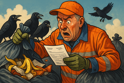 Der Sack wird rausgezerrt, aufgeschlitzt – und siehe da: der Jackpot. Zwischen Pizzakartons, Essensresten und dem obligatorischen „Brot vom Vortag“ liegt ein Brief mit Adresse. Ein klarer Fall für das Ordnungsamt. Wobei: Im nächsten Mülleimer liegt gleich noch ein Sack – und wieder dieselbe Adresse. Entweder hat da jemand das Mülltrennungs-Quiz völlig falsch verstanden oder er wollte die städtische Müllverfolgung mal richtig beschäftigen.